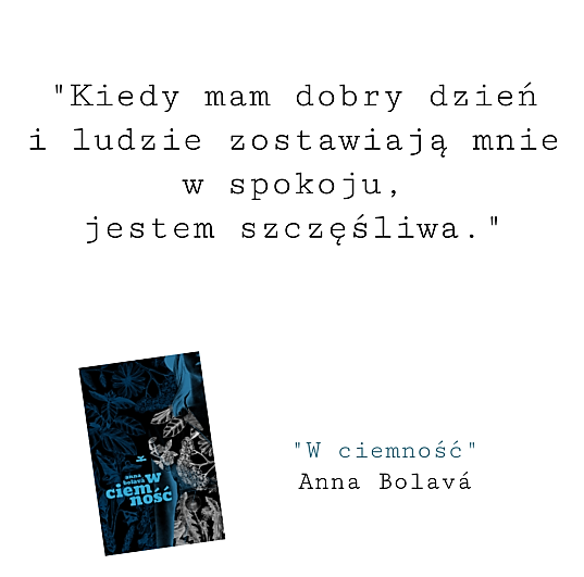 Nie miałam póki co zbyt dużej styczności z literaturą czeską, oczywiście poza namiętnym czytaniem Franza Kafki, którego ubóstwiam, ale którego z wiadomych powodów nie do końca możemy zakwalifikować jako pisarza czeskiego. Spotkanie z prozą Anny Bolávy było więc moim pierwszym poważniejszym spotkaniem z literaturą naszych południowych sąsiadów powstałą w ostatnich latach. Spotkanie to było w swej specyfice zupełnie inne, niżeli zakładałam przed lekturą, ale na pewno pozostanie w mojej pamięci na długi czas!